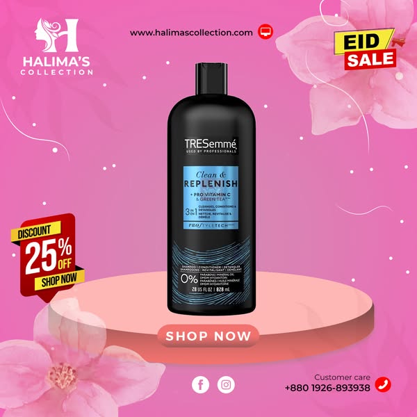 Description : TRESemmé is a salon-quality hair care brand offering shampoos for various hair types, including dry, frizzy, and color-treated hair. Enriched with ingredients like Argan oil and keratin, their shampoos address frizz, dryness, and hair fall while enhancing shine and manageability. Popular variants include Keratin Smooth, Moisture Rich, and Hair Fall Defense.