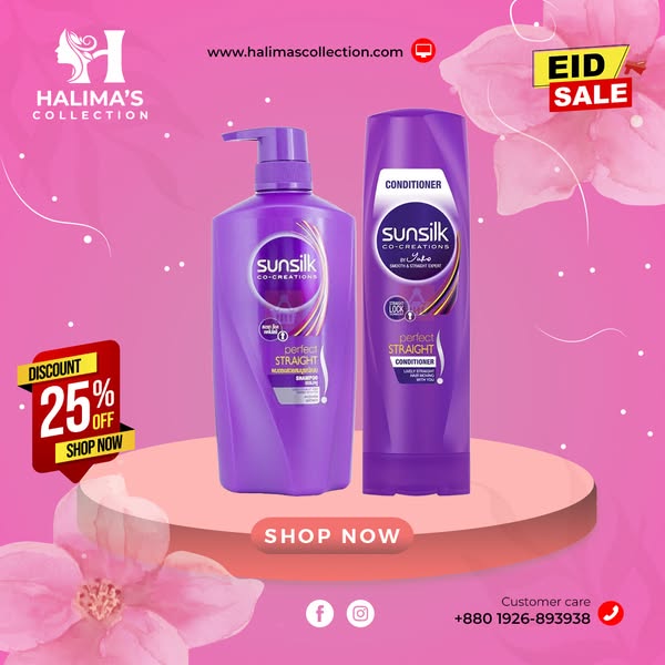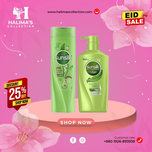 Description : Sunsilk offers affordable shampoos and conditioners for various hair needs like softness, shine, hair fall, and growth. Enriched with natural oils, Sunsilk’s popular lines include Soft & Smooth, Black Shine, and Long & Healthy Growth. PETA-approved and cruelty-free, Sunsilk ensures healthy, nourished hair. Order your favorite Sunsilk products now from Halima’s Collection for soft, shiny, and strong hair!