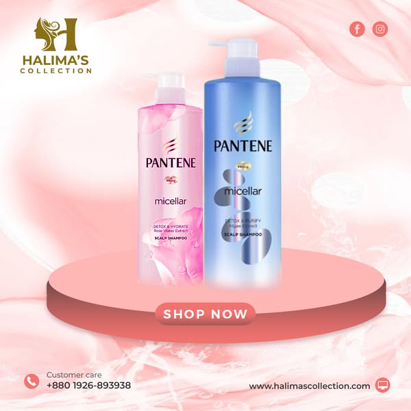 Description : Pantene shampoos are popular in Bangladesh for reducing hair fall. Enriched with fermented rice water, amino acids, and vitamins, they’re available in 400ml bottles from online stores like The Halima's Collection.