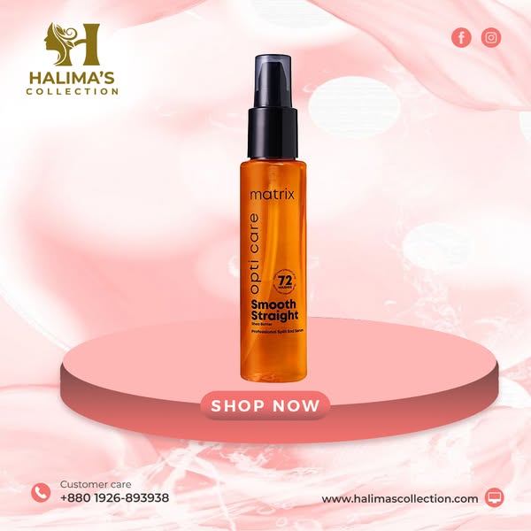 Description : Matrix Opti.Care Smooth is a professional haircare range formulated to control frizz, enhance shine, and maintain straightened hair. Enriched with nourishing shea butter, it deeply moisturizes, softens, and tames unruly strands. Ideal for frizzy, curly, or chemically-treated hair, it ensures sleek, smooth, and manageable results—while offering heat protection and long-lasting salon-like smoothness.